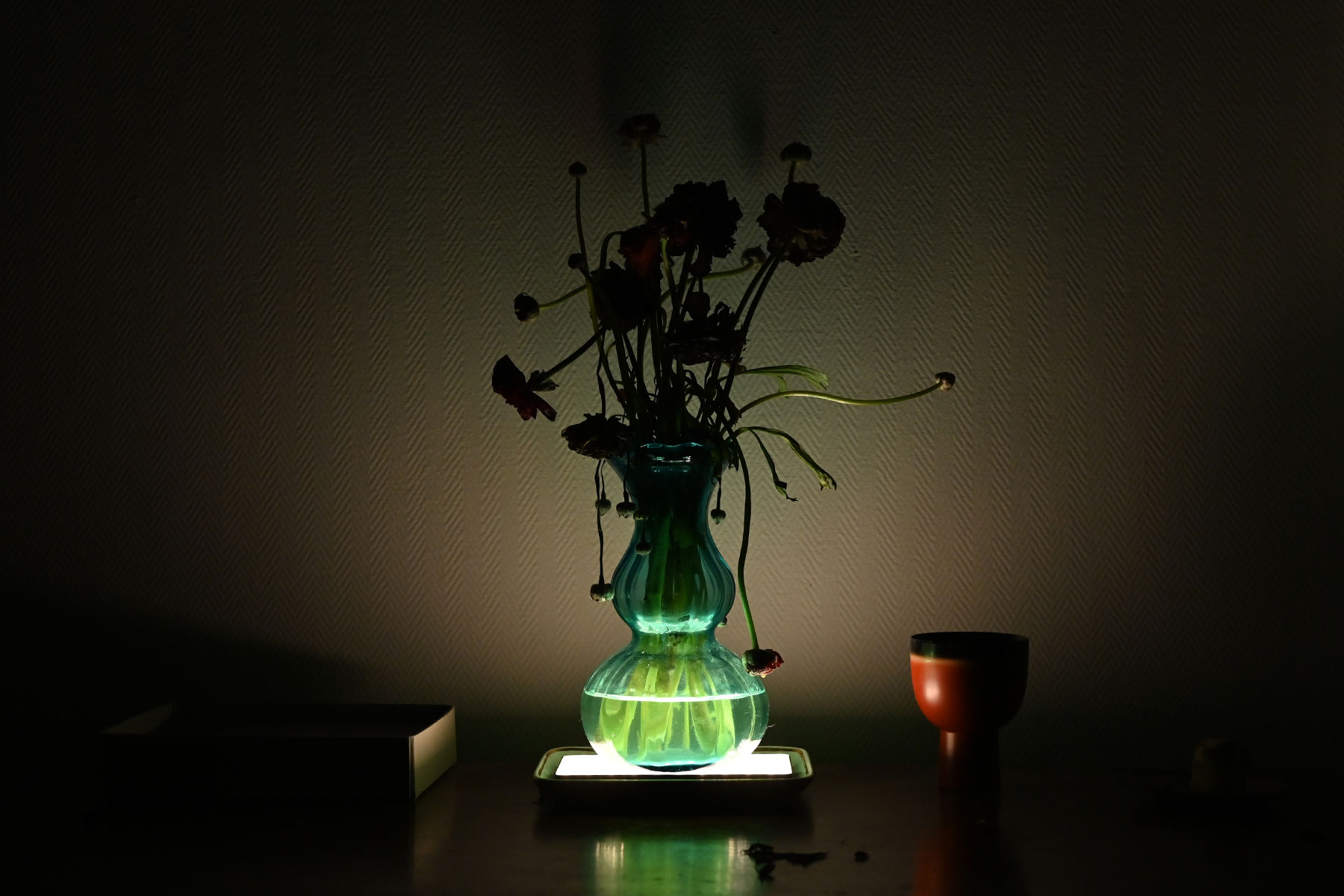 Puisque dans 6 mois je serai ailleurs, il me faut mieux regarder. Je n’aime pas reproduire ce que j’ai déjà fait, déjà questionné, déjà montré, mais je peux aussi me dire que je vais faire mieux, mieux que les images carrées de la maison japonaise. Faire mieux sans la lumière. Sans les ombres, les toits, les gens qui passent, le béton craquelé. Mieux sans les fleurs, toutes les fleurs de la maison là-bas. Ou bien, puisque ce soir elles sont mortes, peut-être se dire que ça dit quelque chose, des fleurs comme ça, finies, sèches, quelque chose d’autre que le simple fait que je ne veux pas les jeter. D’ailleurs à partir de quand les fleurs sont-elles vraiment mortes ? A partir de quand une nature morte l’est vraiment ?