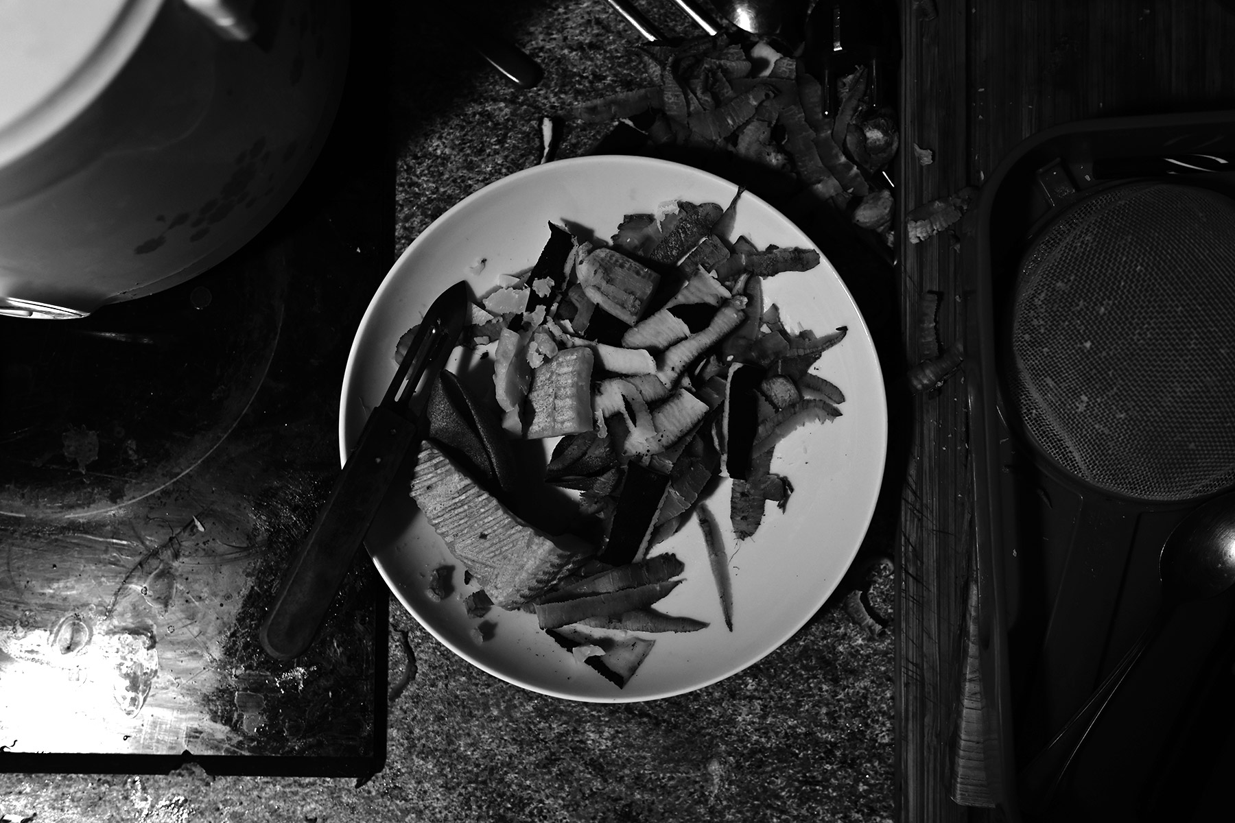 Puisque dans 6 mois je serai ailleurs, il me faut mieux regarder. Je n’aime pas reproduire ce que j’ai déjà fait, déjà questionné, déjà montré, mais je peux aussi me dire que je vais faire mieux, mieux que les images carrées de la maison japonaise. Faire mieux sans la lumière. Sans les ombres, les toits, les gens qui passent, le béton craquelé. Mieux sans les fleurs, toutes les fleurs de la maison là-bas. Ou bien, puisque ce soir elles sont mortes, peut-être se dire que ça dit quelque chose, des fleurs comme ça, finies, sèches, quelque chose d’autre que le simple fait que je ne veux pas les jeter. D’ailleurs à partir de quand les fleurs sont-elles vraiment mortes ? A partir de quand une nature morte l’est vraiment ?