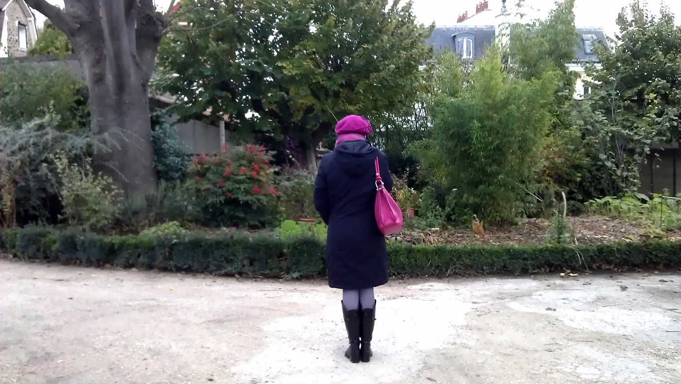 C’est après le déjeuner qu’on va jusqu’aux Roches Noires. Il y a bien sûr l’idée de la présence de Marguerite Duras, elle ne peut pas être absente des conversations. Cette remarque sur les volets pas repeints depuis longtemps – c’est donc sûrement chez elle -, cette femme en doudoune orange sur la terrasse – ça pourrait tellement être elle -, cette autre femme blottie dans un manteau vert qui rince ses bottes dans une flaque – tiens, regarde, elle monte le petit chemin qui longe les Roches. On s’amuse encore de cette possibilité fantomatique, on se souvient encore de cette femme en col roulé.
