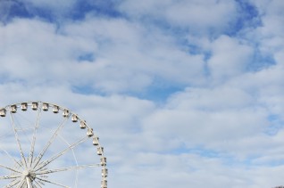 C’est une impression de lumière rose. Car la lumière est forte et les couleurs sont vives sur les trois stands de forains qui, comme chaque année, illuminent la place. Ce soir il y a un adolescent en tee-shirt blanc malgré le froid. De sa carabine, il fait éclater les ballons qui voltigent ; au-dessus de lui une vache en peluche, au fond une vidéo de Céline Dion en concert, ça sent les gaufres. Comme chaque année je n’ose pas vraiment faire de photo, les deux vieilles dames de la pèche au canards me regardent. Comme chaque année je sais que de toute façon c’est impossible, il y a cet arrêt de bus dans le champ. Comme chaque année je regarde la simplicité de ces scènes de vie avec une certaine joie. Peut-être un peu de mélancolie tout de même, car à cette heure-ci il n’y a jamais grand monde et le bonheur des deux dames qui regardent tourner les canards dans l’eau froid doit être assez fragile.