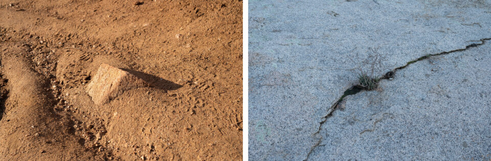 Et puis vient ce moment où l’un des deux appuie sur le petit bouton rouge. C’est un silence écrasé et détruit qui suit. Et, vite, je veux revoir nos jours ensemble, guérir, me raccrocher, étouffer l’amertume, n’offrir à la désolation que des larmes, pas l’oubli. Que disent alors les images de là-bas qu’ensuite je choisis et j’aligne ici, luttant contre l’épuisement et l’accablement ? Je sais tout ce qu’elles taisent aussi, ces images, mais elles sont notre histoire : le désert, le soleil, tes mains.