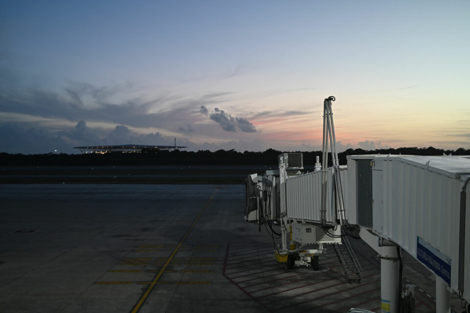 C’est déjà la nuit, c’est ailleurs, un autre continent. Cancún. M’y voilà. C’avait été le bleu prévu de la mer, c’était devenu une escale, qu’importe. Je cherche mon chemin, un peu fébrile et hésitant ; où faut-il regarder ? Une fois sorti dans la chaleur humide, une horde d’hommes me hèlent pour un taxi, mais non, pas pour moi, alors l’un d’eux me dit que la navette c’est par là-bas. C’est une autre langue, ce que j’en sais est suffisant, incertain, bancal. Soudain, une main sur mon épaule. J’hésite une fraction de seconde, cela me rappelle le pickpocket du 25 septembre 2017, mais je me retourne. C’est toi. Inattendu.